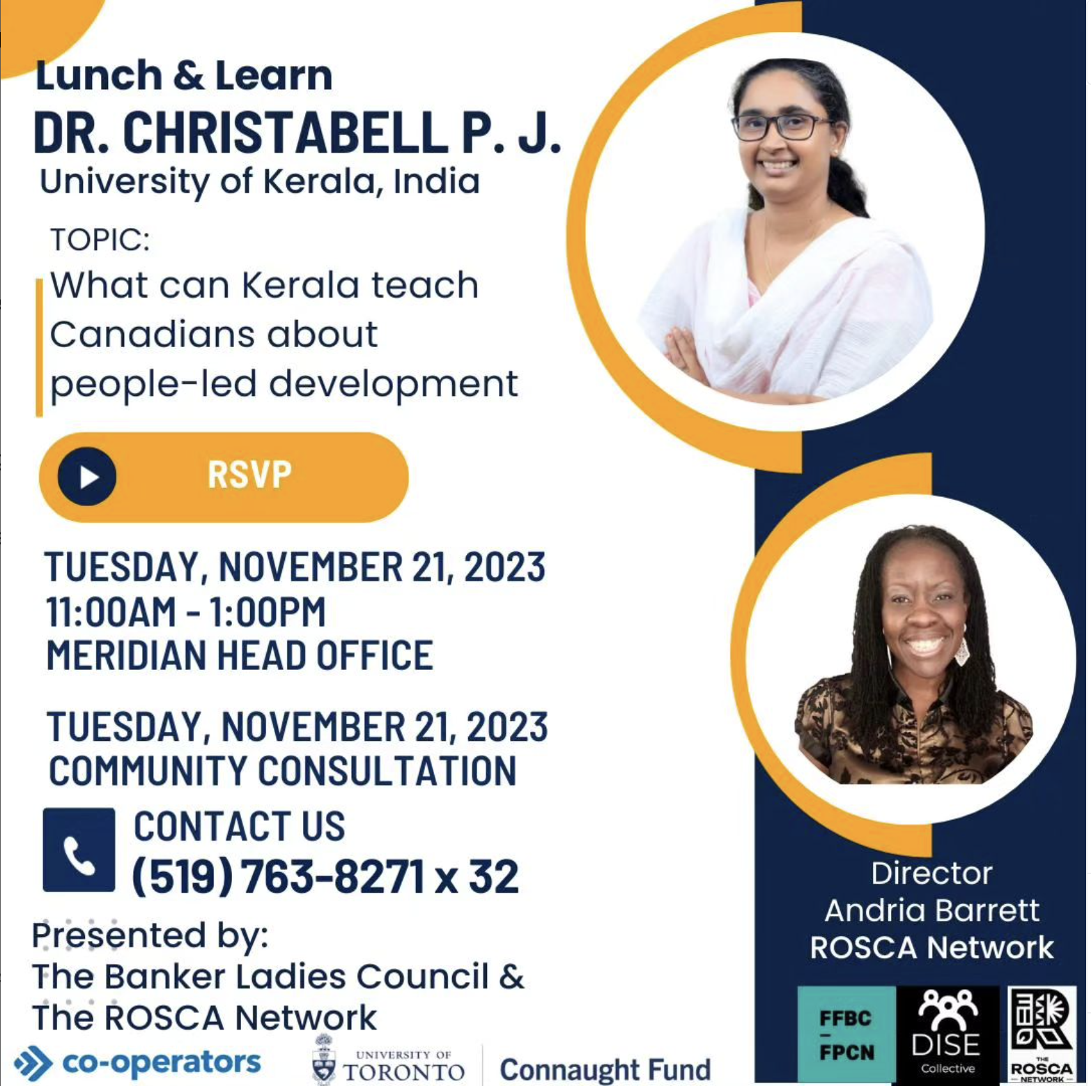 Dr. Christabell will present What Can Kerala Teach Canadians About People-Led Development?