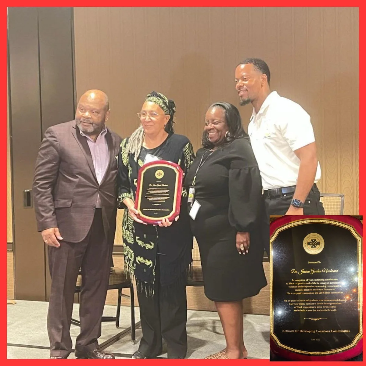 On June 1st 2023 the Black Cooperative Agenda National Conference was held in Las Vegas, Nevada. DISE Collective member and elder Dr. Jessica Gordon-Nemhard was recognized by The Network of Developing Conscious Communities for her outstanding contributions to Black cooperative and solidarity endeavours.