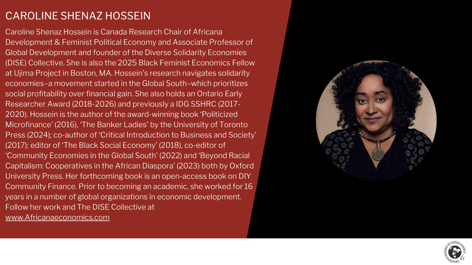Dr. Caroline Hossein will be speaking at this year’s International Association for Feminist Economics Conference, on June 20th, as part of the online presentations and engagements portion. This year’s theme is Social Justice through Solidarity: Cultivating Solidarity within Feminist Economics. The majority of sessions will be in panel format with three presenters per panel who are grouped by a common general theme. Each panel will run for one hour with each presenter sharing for 12 minutes followed by space for questions, comments and/or discussion.